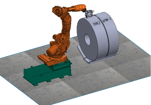 該設(shè)備機械系統(tǒng)由ABB機器人、機器人底座及隔熱***圍欄構(gòu)成。其中IRB 6700機器人是系統(tǒng)的核心部件,IRB 6700 是一款非常適合工業(yè)現(xiàn)場的機器人產(chǎn)品,它可達到的遠距離是3.2m,有效的負載能力是150KG,6軸驅(qū)動結(jié)構(gòu)非常靈活,帶動噴頭在鋼卷表明噴出需要的字符。(見下圖)